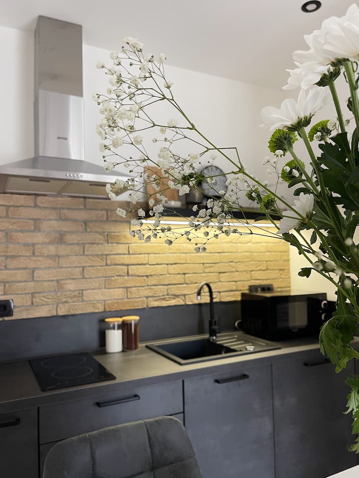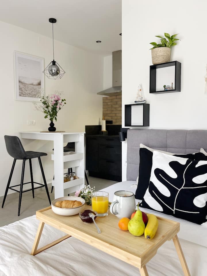 อพาร์ทเมนท์สตูดิโอที่อบอุ่นพร้อมระเบียง + ที่จอดรถฟรี