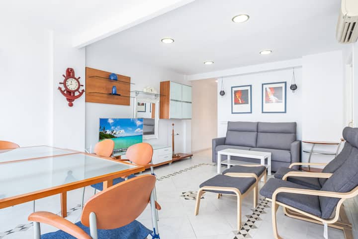 อพาร์ทเมนท์บนชายหาดแถวที่ 2 ของเลวันเต เบนิโดร์ม มี 2 ห้องนอนและรองรับได้ 6 คน