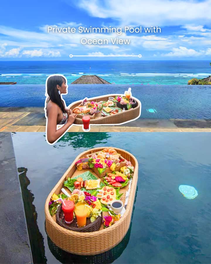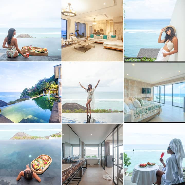 วิลล่าส่วนตัวหรูหรา 4 ห้องนอน (เตียงคิงไซส์พิเศษ 3 เตียงและเตียงควีนไซส์ 1 เตียง รวม 4 ห้องนอนพร้อมห้องน้ำในตัว 3 ห้อง สระว่ายน้ำอินฟินิตี้ขนาดใหญ่และที่ดินรวม 800 เมตร ตั้งอยู่ในย่านนูซาดูอา พร้อมวิวทะเลที่สวยงาม เป็นส่วนตัวและเข้าถึงชายหาดส่วนตัวได้ง่าย