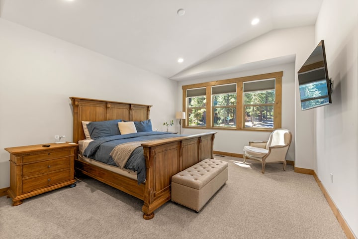 ที่พักนี้มี 2 ชั้นในชั้นทางเข้าคุณจะพบห้องนอน 3 ห้องจาก 4 ห้องที่มีเตียงคิงไซส์ควีนไซส์และเตียงสองชั้น 2 หลัง ชั้นบนจะเป็นห้องนอนที่ 4 มีเตียงคิงไซส์พร้อมพื้นที่นั่งเล่นและห้องครัวที่กว้างขวางและเปิดโล่ง มีหน้าต่างบานใหญ่ทั่วชั้นบนเปิดรับแสงธรรมชาติทั้งหมดและช่วยให้คุณเพลิดเพลินไปกับบรรยากาศป่าไม้ที่บ้านหลังนี้ให้คุณ ก้าวออกไปบนดาดฟ้าและเพลิดเพลินกับการสูดอากาศในทาโฮที่น่ารักในขณะที่จิบกาแฟยามเช้าหรือเครื่องดื่มยามบ่ายของคุณ