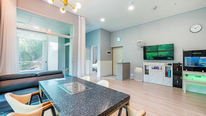 เราห้ามทำหมูปลาและชองกุกจังในห้องเพื่อพิจารณาผู้เข้าพักรายอื่นเนื่องจากไฟและกลิ่นดังนั้นโปรดใช้สถานที่กลางแจ้งที่กำหนดและพื้นที่ทำบาร์บีคิว