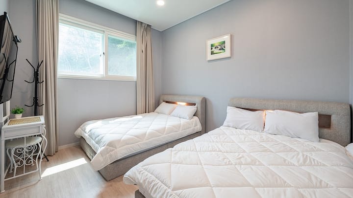 ค่าใช้จ่าย: 35,000 วอนสำหรับ 2 ~ 4 คน (5,000 วอนสำหรับผู้เข้าพักเพิ่มเติม 1 คน/5,000 วอนต่อถ่านเพิ่มเติม) (ต่อคืน)