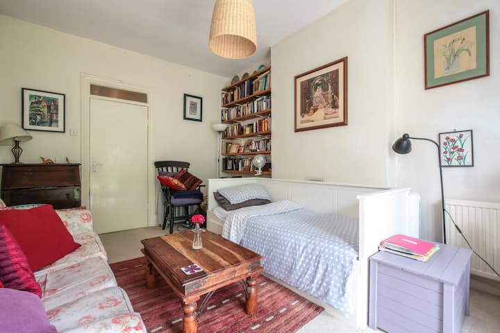สวัสดีฉันอาศัยอยู่ในลอนดอนเหนือและชอบให้ผู้เข้าพักเข้าพัก ฉันใช้เวลามากในการเขียนห้องสมุด