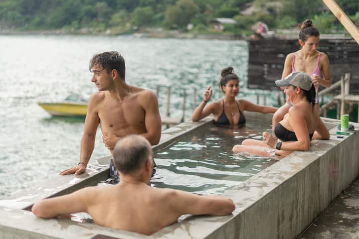 ชาวฝรั่งเศสที่อาศัยอยู่ในทะเลสาบ Atitlan ตั้งแต่ 27 ปี ครอบครัว 5 คนฉันมีลูก 2 คน (14 -16) ทุกคนกำลังเพลิดเพลินกับวิถีชีวิตริมทะเลสาบ