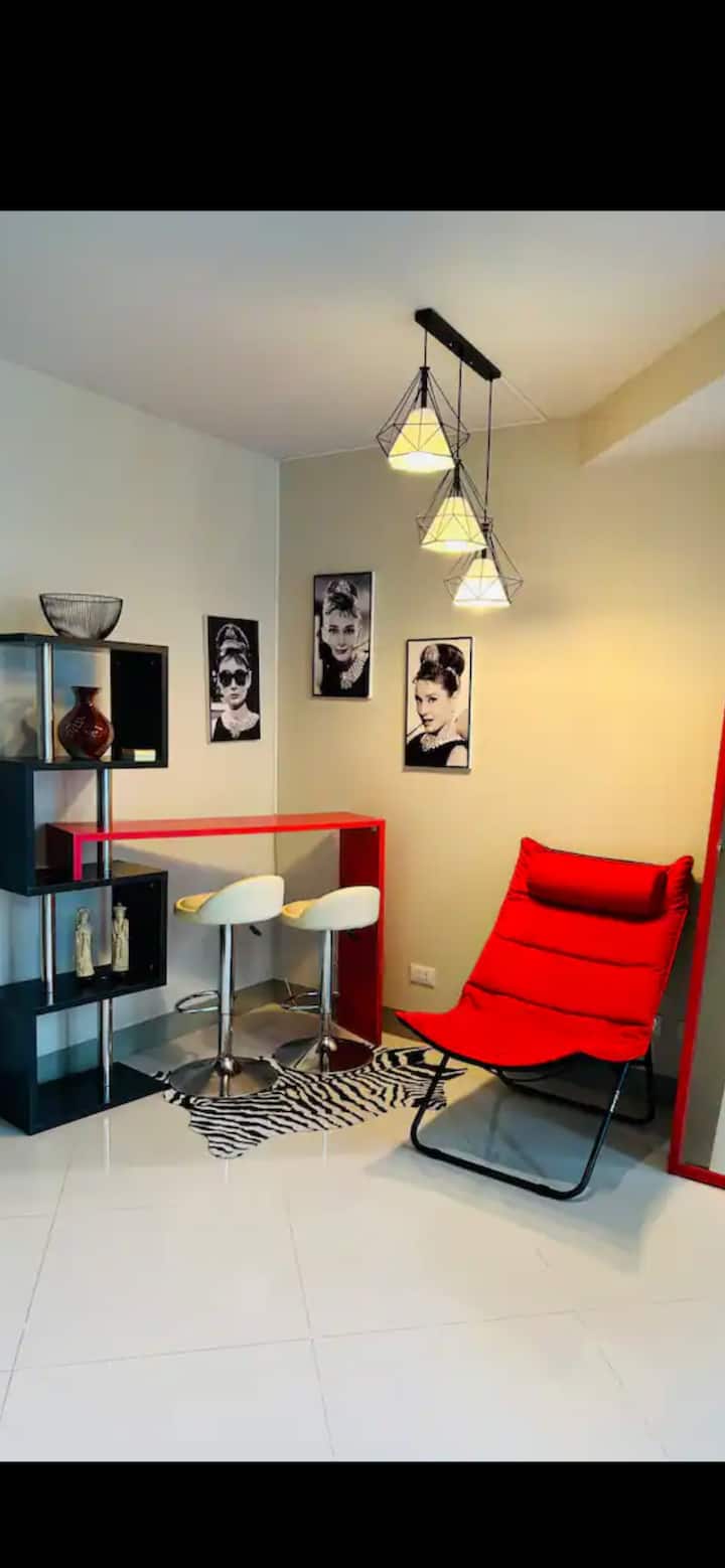 ห้องพักแบบหนึ่งห้องนอนที่มีสไตล์พร้อมระเบียง