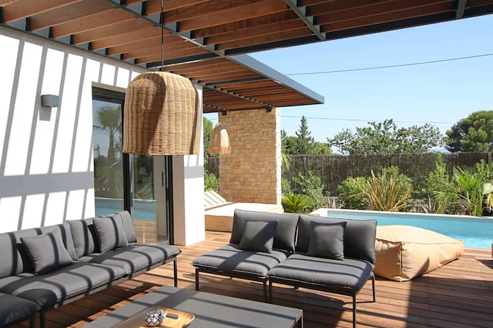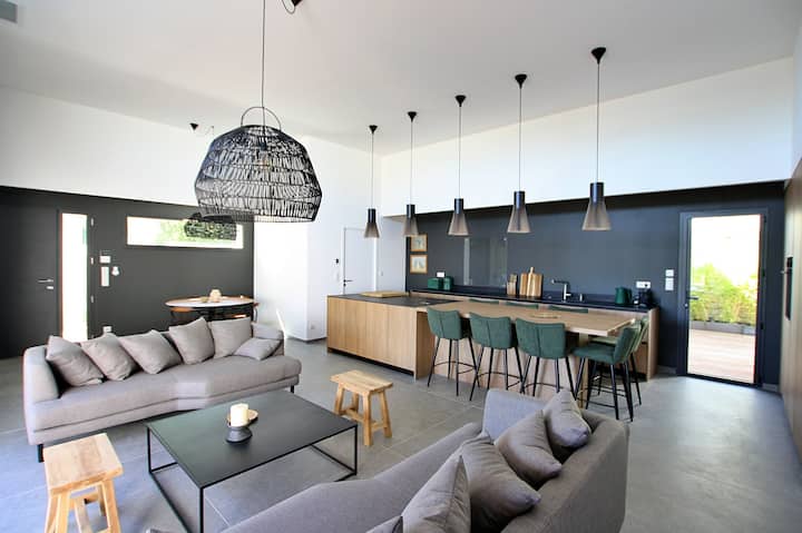 วิลล่าสไตล์ร่วมสมัย สำหรับผู้เข้าพัก 8 คน มีสระว่ายน้ำอุ่น*