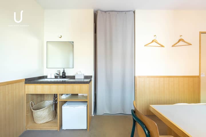 ห้องพักสไตล์มินิมอลสำหรับการใช้งานแบบสบายๆมีห้องครัวห้องรับประทานอาหารและพื้นที่ทำงานที่กว้างขวางในพื้นที่เลานจ์ที่ใช้ร่วมกันนอกจากนี้ยังมีสิ่งอำนวยความสะดวกใน Ohashi Kaikan ที่คุณสามารถเพลิดเพลินกับอาหารและที่พักพิงที่หรูหราขึ้นเล็กน้อยเช่นร้านกาแฟ/ร้านอาหารและซาวน่า