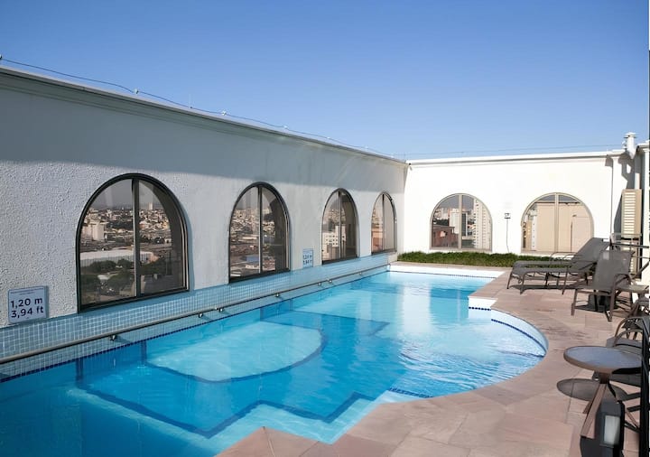 นี่เป็นหนึ่งในที่พักไม่กี่แห่งของย่านนี้ที่มีสระว่ายน้ำ