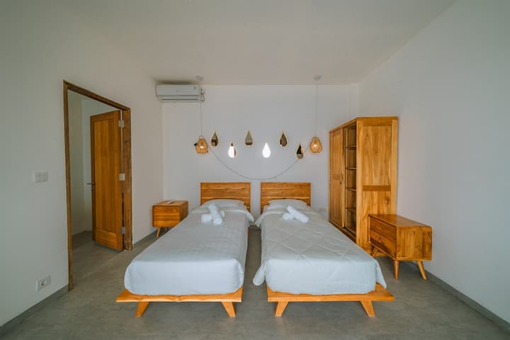 วิลล่าขนาด 4 ห้องนอนที่ชาญฉลาดและกว้างขวาง (พร้อมเตียงควีนไซส์ 3 เตียงและเตียงเดี่ยว 2 เตียง) แห่งนี้มีสิ่งอำนวยความสะดวกครบครันสำหรับการพักผ่อนบนเกาะของคุณพร้อมสิ่งอำนวยความสะดวกเช่นสระว่ายน้ำส่วนตัวบริการทำความสะอาดรายวันและพนักงานห้องครัวที่มีอุปกรณ์ครบครัน Wi-Fi ใยแก้วนำแสงความเร็วสูงฟรีสวนสวยสมาร์ททีวีพร้อมเน็ตฟลิกซ์เครื่องปรับอากาศและที่จอดรถฟรีสูงสุด 2 คันและสกู๊ตเตอร์ 4 คันต่อวิลล่า