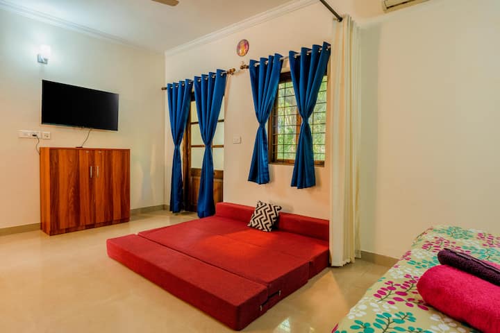 สตูดิโอชั้นล่างที่ได้รับการปรับปรุงใหม่บนถนน Calangute ที่มีชีวิตชีวาให้ทั้งพลังงานและความเป็นส่วนตัว เหมาะสำหรับคู่รักหรือครอบครัวพักได้ 4 คนพร้อมเตียงคู่โซฟาคัมเบดห้องครัวขนาดเล็กและห้องน้ำส่วนตัว ห่างจากร้านอาหารและร้านเบเกอรี่คาเฟ่ชื่อดังของเยอรมันเพียงไม่กี่ก้าวและนั่งรถ 5 นาทีไปยังหาด Calangute ระเบียงมองเห็นพื้นที่เงียบสงบและรกร้างด้านหลังของรีสอร์ท สังคมไม่ได้รับการดูแลแต่อพาร์ทเมนท์ทันสมัยและมีสิ่งอำนวยความสะดวกครบครัน จองตอนนี้เพื่อความสะดวกในกัว!