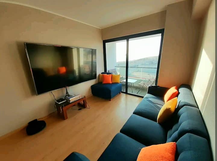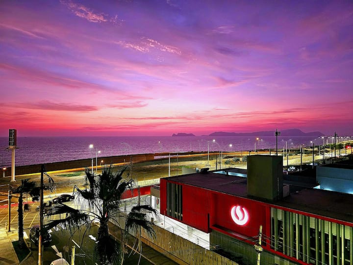 ห้องพักที่สวยงามหันหน้าไปทางทะเล มีห้องซาวน่า ห้องออกกำลังกาย และสระว่ายน้ำชั้นเยี่ยม