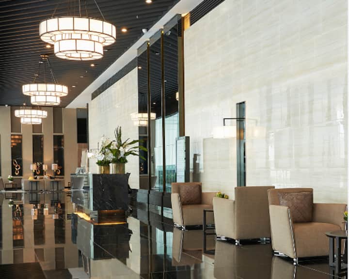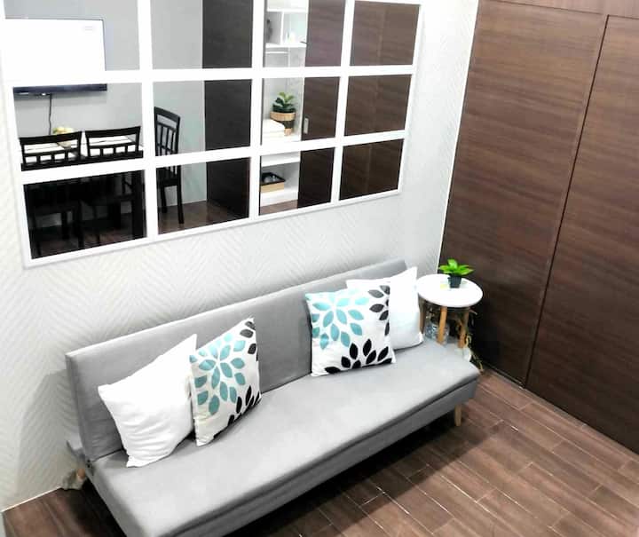 1 ห้องนอนสะดวกสบายและใหม่เอี่ยมเหนือแอร์มอลล์ สมาร์ททีวี Wi-Fi