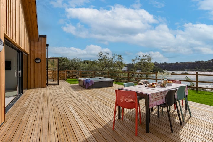 ที่พักมีอ่างน้ำร้อนและวิวทะเลสาบ