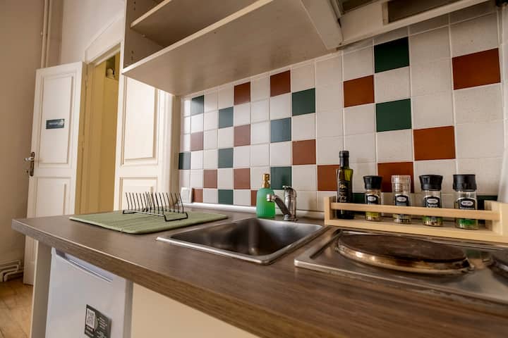 เหมาะสำหรับคู่รักหรือคนเดียวที่พักในย่าน Beyoglu คุณจะพบว่ามันเงียบสงบและสะดวกสำหรับร้านอาหารซูเปอร์มาร์เก็ตคาเฟ่ยอดนิยมร้านชาตุรกีร้านไวนิลร้านขายวินเทจบูติคและสตูดิโอศิลปะดีไซน์เนอร์ ใช้เวลาเดิน 10 นาทีไปยังจัตุรัสทักซิมหรือเดิน 5 นาทีไปยังสวนสาธารณะคราฟท์เมนเพื่อชมวิวทะเลเบโซรัสเดิน 15 นาทีไปยังกาลาตาพอร์ตเอวีเอ็มเครื่องซักผ้าและเครื่องอบผ้าตั้งอยู่ในชั้นใต้ดินมีน้ำยาซักผ้าและน้ำยาปรับผ้านุ่มให้ใช้ฟรี(อาคารนี้เป็นคฤหาสน์ประวัติศาสตร์ สามารถเช่าคฤหาสน์ได้ทั้งกลุ่ม)