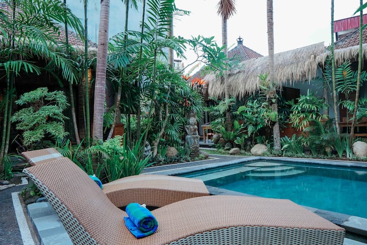 นี่เป็นหนึ่งในที่พักไม่กี่แห่งของย่านนี้ที่มีสระว่ายน้ำ