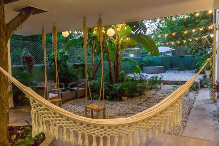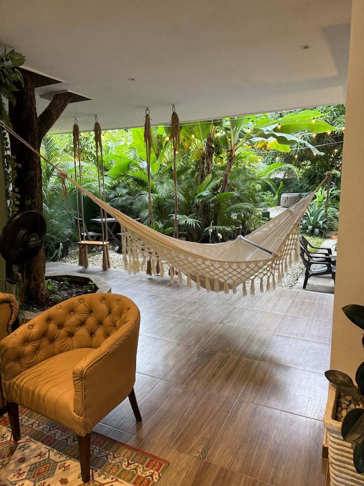I am Naty, a Colombian traveler, founder of Serankua: a space conceived as a refuge of modern and organic architecture, built around sapote and mango fruit trees, respecting their natural environment, flora and fauna, with particularly attention to birds.