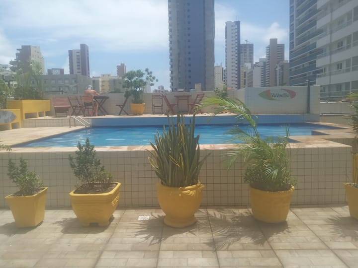 นี่เป็นหนึ่งในที่พักไม่กี่แห่งของย่านนี้ที่มีสระว่ายน้ำ
