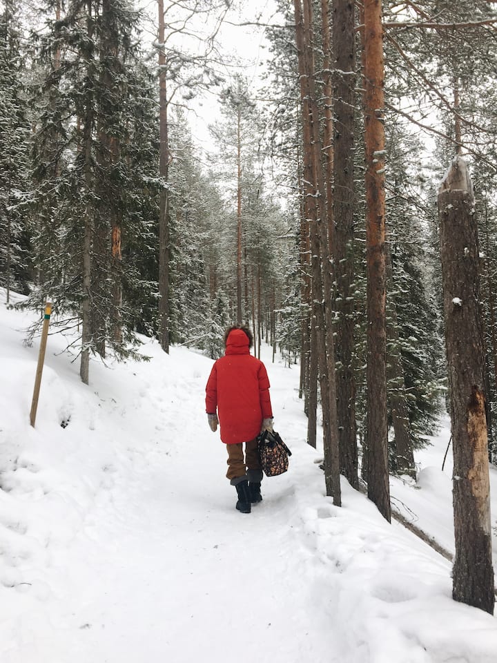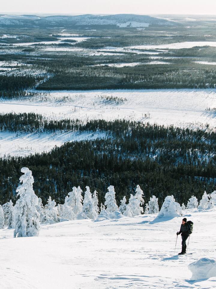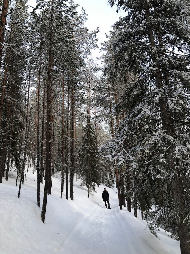 เล่นสกีในป่าเงียบสงบในอาร์กติก