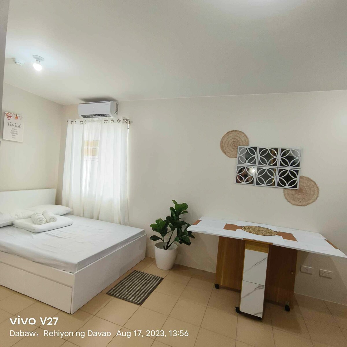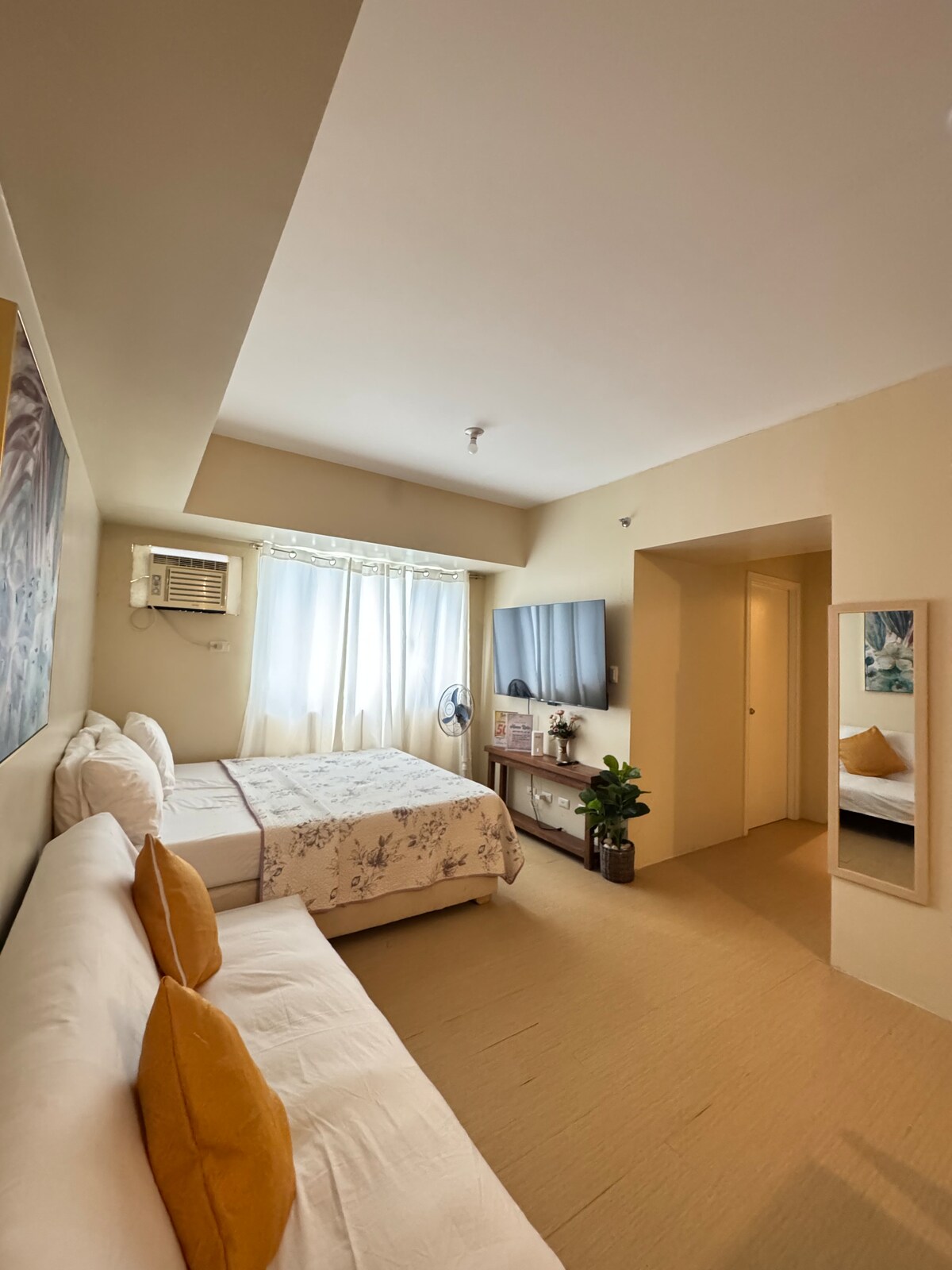 คอนโด: - 2 ห้องนอน (เตียงใหญ่และเตียงสองชั้น) -โฟม 1 ชิ้น - 1 ห้องน้ำ - เครื่องปรับอากาศ 1 เครื่องสำหรับทั้งยูนิต - ระเบียงปิดชั่วคราว - เคาน์เตอร์ครัวพร้อมตู้เย็นขนาดเล็ก - มีเครื่องใช้ในการทำอาหารให้ ความสะดวกในการเข้าพัก: - มีสระว่ายน้ำ - มีเจ้าหน้าที่รักษาความปลอดภัยตลอด 24 ชั่วโมงทุกวัน - มินิมาร์ทและศูนย์ซักรีดภายในพื้นที่ - ใกล้สถานีรถสามล้อ ร้านขายยาเมอร์คิวรี่ และซูเปอร์มาร์เก็ตเพียวโกลด์ ที่ตั้ง: ท่าเรือ📍ซาซ่า 📍สนามบิน 📍อาซูเอลาโคฟ (ห่างออกไป 3 นาที) 📍เอสเอ็มลานัง (ห่างออกไป 6 นาที) 📍ห้างอาบรีซาอายาลา (ห่างออกไป 15 นาที)