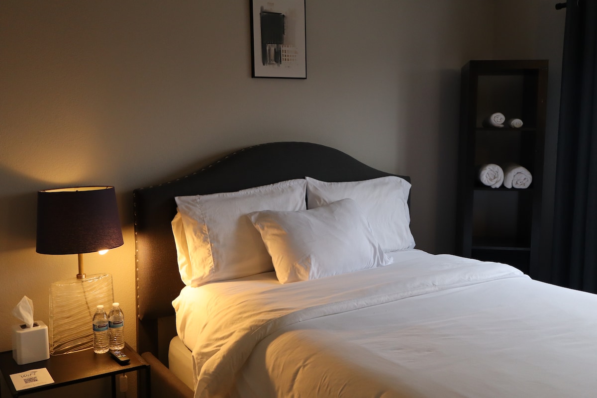 มาเพลิดเพลินกับยูนิต 1 เตียงนี้ ห้องนอนแสนสบายและสีสันสดใสพร้อมเตียงควีนไซส์สบายๆ ห้องนั่งเล่นประกอบด้วยพื้นที่รับประทานอาหารโดยเฉพาะและพื้นที่พักผ่อนพร้อมโซฟาและทีวี ห้องครัวขนาดเล็กมีไมโครเวฟเตาอบขนาดเล็กและเครื่องชงกาแฟ k-cup แต่ไม่มีเตา เครื่องทำความร้อนและเครื่องทำความเย็นที่ติดตั้งใหม่ ห้องสวีทนี้เป็นส่วนหนึ่งของบ้านเดี่ยวส่วนที่เหลือของบ้านให้เช่าเป็นที่พัก Airbnb แต่มีทางเข้าแยกต่างหาก พื้นที่ดาดฟ้าใช้ร่วมกัน ทางเข้าอยู่ในสวนหลังบ้าน