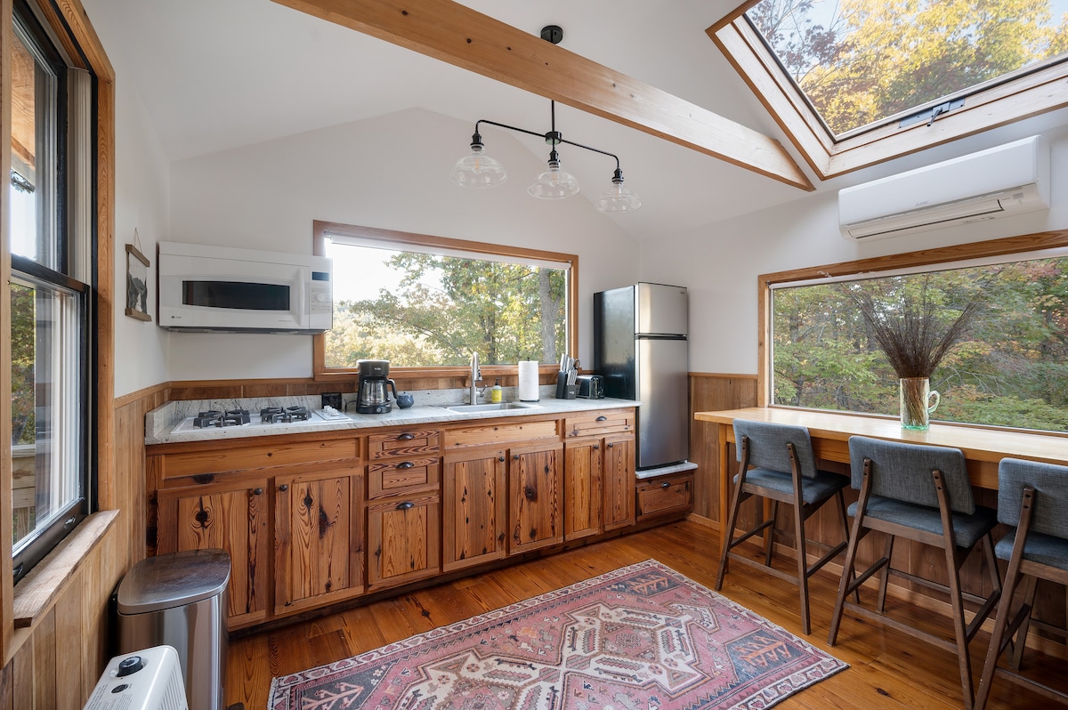 เวทมนตร์เป็นคำที่คนส่วนใหญ่ใช้เมื่อพวกเขาเยี่ยมชมอัญมณีที่ซ่อนอยู่นี้ สร้างขึ้นในปี 1939 เป็นเคบินตกปลาโดยสุภาพบุรุษที่รวมรถกล่องไว้เป็น rafters และคานวันที่ยังคงมองเห็นได้ตั้งแต่ถอดห้องใต้หลังคาออก ที่พักที่ดีที่สุดที่ฉันเคยพักเลย ฉันตัดสินใจที่จะแบ่งปันมันกับคนอื่นๆที่รักการสำรวจผู้ที่รักการฟังเสียงของลำห้วยหรือผู้ที่มานั่งบนระเบียงสูงเหนือลำห้วยกับคู่สมรสเพื่อนครอบครัวหรือคนเดียว เพื่อการนอนหลับที่ดีที่สุดเปิดหน้าต่างห้องนอน!