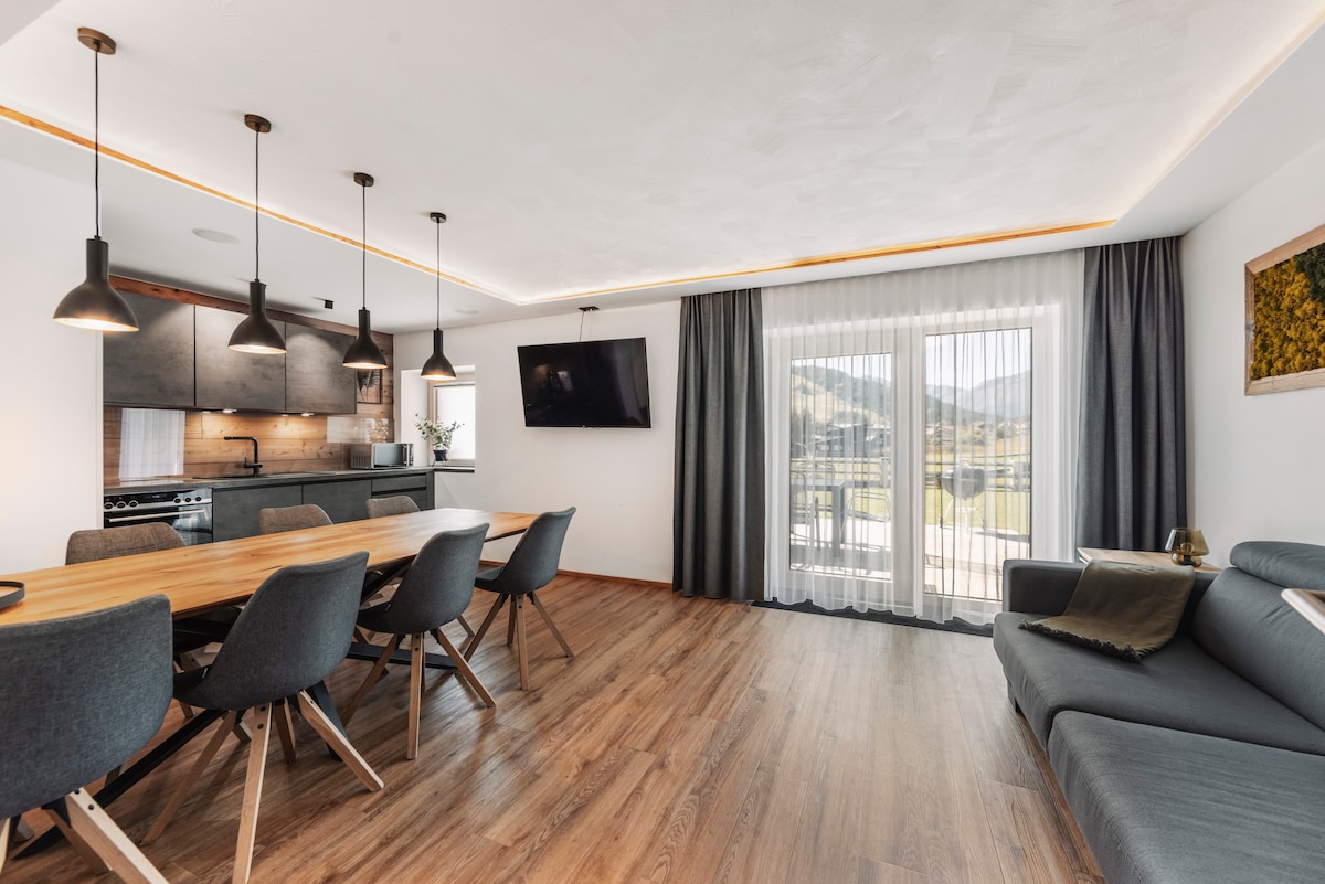 อพาร์ทเมนท์เพนท์เฮาส์ที่หรูหราในสไตล์โมเดิร์นอัลไพน์บนที่ราบสูงซีเฟลด์ อพาร์ทเมนท์ที่อบอุ่นเงียบสงบบนชั้นสุดท้ายได้รับการออกแบบอย่างสะดวกสบายมากสำหรับไม่เกิน 4 คน มีพื้นที่รับประทานอาหารที่สว่างสดใสพร้อมห้องครัวที่ทันสมัยพร้อมอุปกรณ์ครบครันห้องนอนคู่สองห้องห้องน้ำสองห้องเครื่องทำความร้อนบนพื้น Wi-Fi ฟรีและระเบียงส่วนตัวขนาดใหญ่มาก จากที่นั่นคุณจะเพลิดเพลินไปกับวิวทิวทัศน์ที่สวยงามของภูเขาและหุบเขาอินน์ทั้งในฤดูร้อนและฤดูหนาว