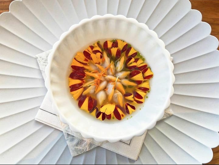 “Equilibrium” เป็นเมนูชิม 4 คอร์สที่สำรวจความแตกต่างที่ละเอียดอ่อนระหว่างความสดใหม่และความลึก ผักและสัตว์ทะเล ความหวานและความขม แต่ละเมนูถูกคิดขึ้นเป็นช่วงเวลาที่แม่นยำภายในประสบการณ์ ให้เกียรติฤดูกาลในขณะที่แสดงเทคนิคร่วมสมัยผ่านการแสดงออกที่สะอาดและสง่างาม