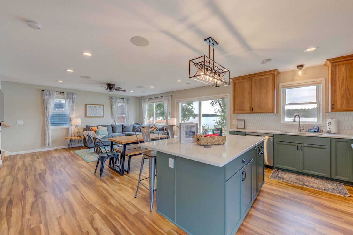 3 ห้องนอน (2 เตียงคิงไซส์ 1 เตียงควีนไซส์ 2 ห้อง) บ้านอาบน้ำ 2 ห้องตั้งอยู่บน South Center Lake ดื่มด่ำกับวิวสวยๆ จากอ่างน้ำร้อนและระเบียงส่วนตัว เพลิดเพลินกับฤดูร้อนริมทะเลสาบ หรือพักผ่อนสบายๆ สักคืนบนพื้นอุ่นในช่วงฤดูหนาว ของว่างและกาแฟที่คั่วสดใหม่จากร้านคั่วกาแฟในท้องถิ่นของเรา (คั่วเข้มหรือคั่วอ่อน คุณเลือกได้!) การซักรีดในสถานที่/เตาย่างแก๊ส/ห้องครัวเต็มรูปแบบ/เกมสนาม/เรือพาย/เรือแคนู ทางเข้าชั้นล่างเป็นทางเข้าสำหรับวีลแชร์