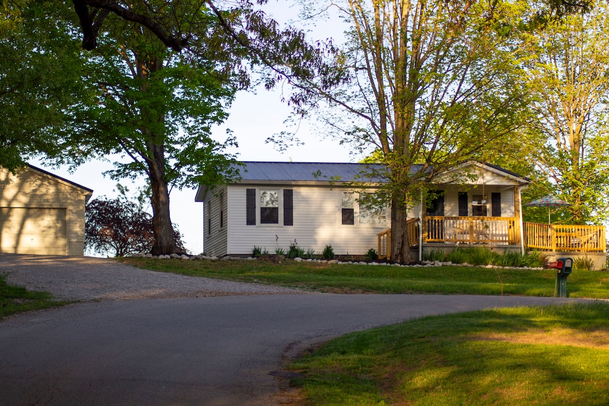 - กระท่อมชนบทที่แปลกตาบนเลนส่วนตัว - เหมาะสำหรับคู่รักหรือครอบครัวขนาดเล็ก - เตียงขนาดคิงไซส์ในห้องนอนใหญ่เตียงขนาดใหญ่ในห้องนอนที่สอง - ตั้งอยู่ระหว่างแนชวิลล์เทนเนสซีและโบว์ลิ่งกรีน KY off I -65 อยู่ใกล้พอที่จะอยู่ในสถานที่และกิจกรรมเหล่านี้ได้ภายใน 1 ชั่วโมง - พระอาทิตย์ตกที่เงียบสงบและวิวฟาร์มที่สวยงาม - มีเตาผิงและเตาถ่านเพื่อความเพลิดเพลินภายนอก - ห้องน้ำปรับปรุงใหม่และพื้นใหม่ทั้งหมดตลอด (คอทเทจเดิมชื่อ "บิลคอทเทจ" สำหรับผู้เข้าพักที่กลับมา)