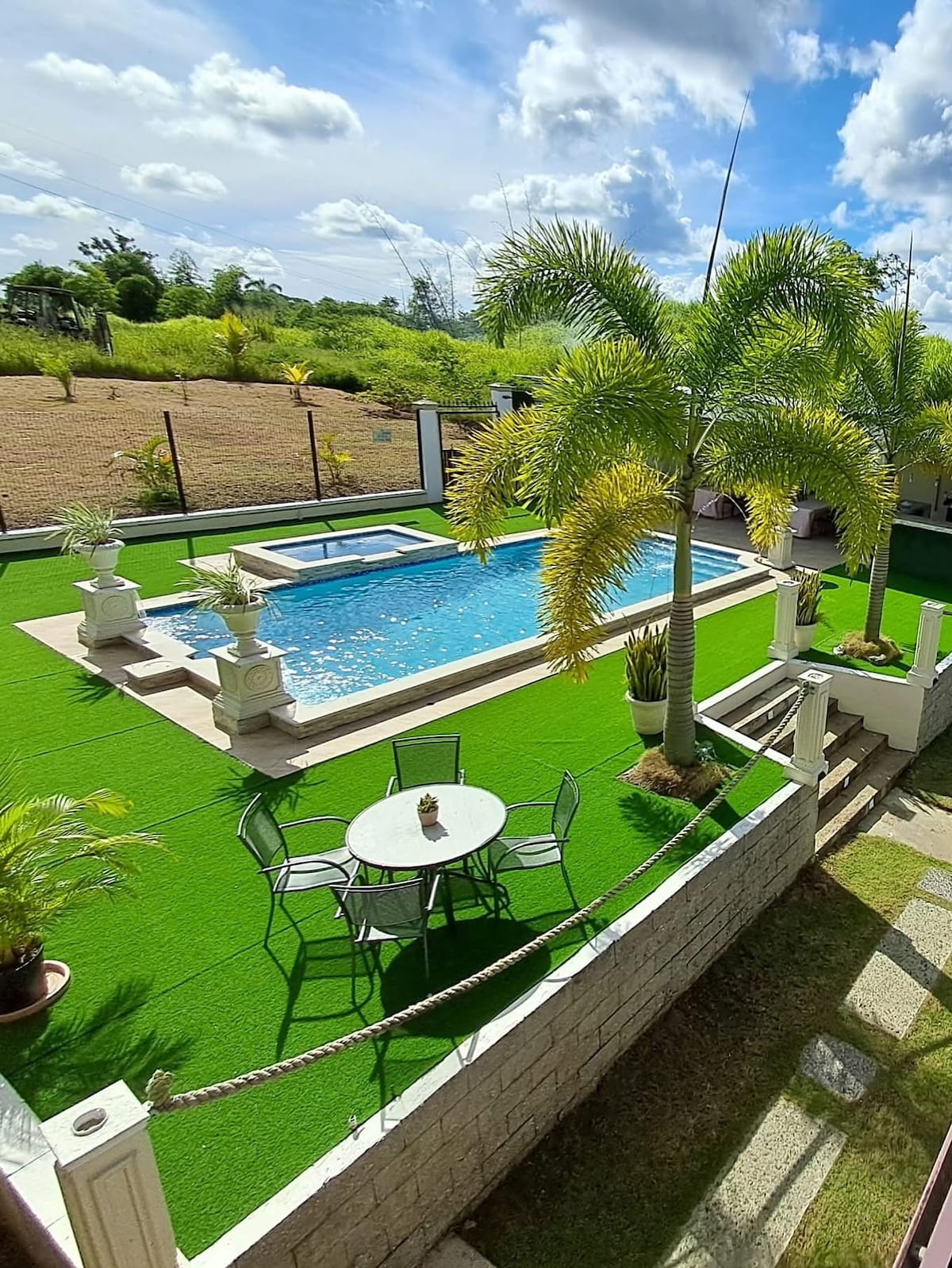 Clean and tidy self contained flat 2 double bedrooms with 2 single beds in each room. Near busy road but nice view all around. Relaxing accommodation with flowered garden. Parking. Near public transport. Not far from beach.markets available to visit.5 min to San Fernando, the Putch Lake.