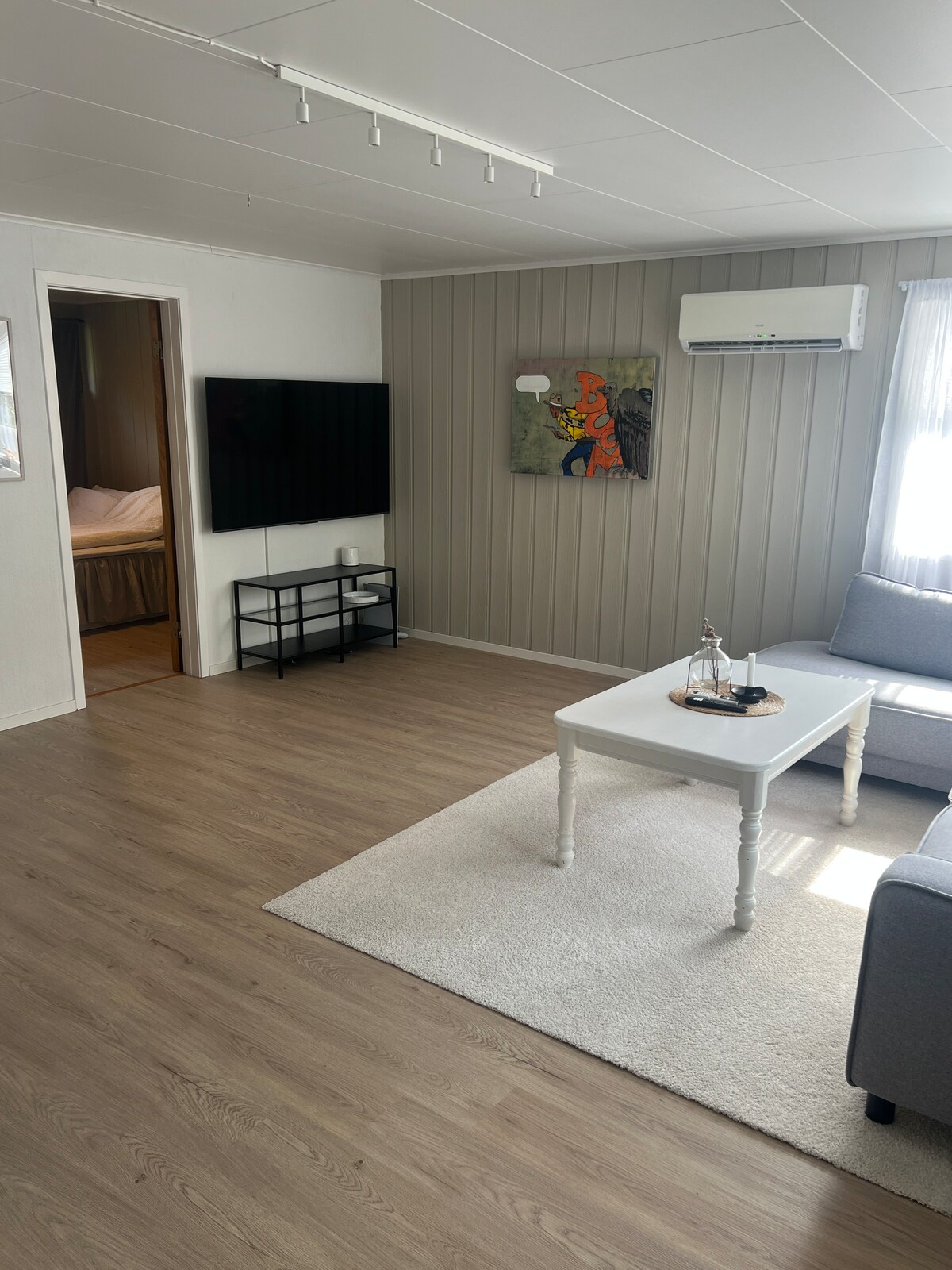 🌟 The entire apartment is at your disposal – with bed linens, towels, Wi-Fi, and all basic essentials included. Parking is available, and there is step-free access to the apartment. 🏡 Make yourself at home and enjoy your days and evenings in the heart of Leirvik, with cafés, shops, a gym, and restaurants just a stone’s throw away. 🎨 The apartment is decorated with wall art, beautiful pictures, and sculptures, creating a unique and welcoming atmosphere.