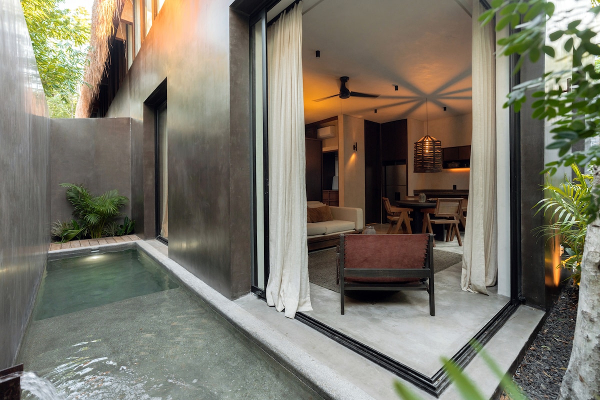 ที่คาซาคุโร สถาปัตยกรรมญี่ปุ่นสื่อสารกับป่ามายันในที่พักผ่อนที่เงียบสงบ การสร้างนามุส ผู้พัฒนาที่ได้รับการตีพิมพ์ในนิตยสารสถาปัตยกรรมระดับโลกที่สำคัญที่สุด เช่น Architectural Digest, ArchDaily, Design Boom และในหนังสือ "The Best of Mexican Architecture of the 21st Century" นอกเหนือจากรางวัลระดับนานาชาติหลายรางวัล อพาร์ทเมนท์ชั้นแรกนี้เป็นวิหารสำหรับคนรักศิลปะ: 2 ห้องนอน สระว่ายน้ำส่วนตัว อ่างอาบน้ำ และวิวป่า
