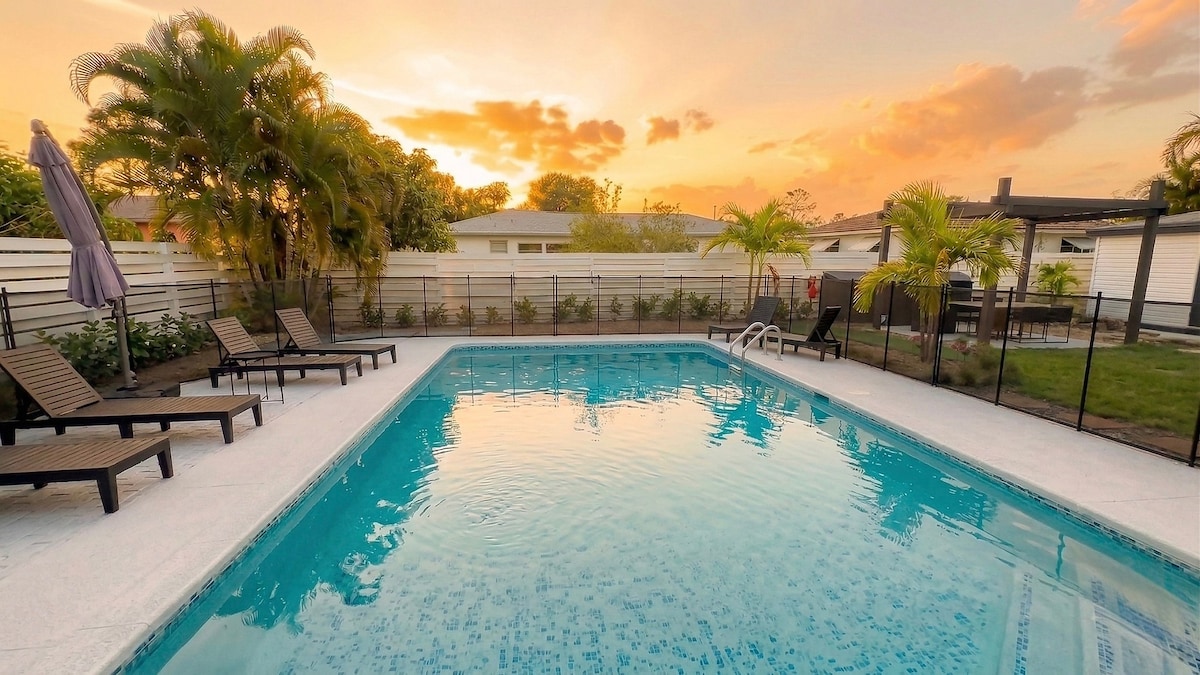 🌞 บ้านพร้อมสระว่ายน้ำอุ่นสวยงามใกล้ทุกอย่าง – เหมาะสำหรับการพักผ่อนและสะดวกสบาย! ยินดีต้อนรับสู่การพักผ่อนในเขตร้อนใจกลางฟลอริดาตะวันตกเฉียงใต้ บ้าน 3 ห้องนอน/2 ห้องน้ำที่ได้รับการดูแลอย่างสวยงามแห่งนี้ตั้งอยู่ห่างจากชายหาดระดับโลกและสถานที่ท่องเที่ยวชั้นนำในท้องถิ่นเพียงไม่กี่นาที มีการผสมผสานที่สมบูรณ์แบบของความสงบ ความสะดวกสบาย และความสะดวกในการเข้าถึง ไม่ว่าคุณจะมาที่นี่เพื่อพักผ่อนกับครอบครัว การพักผ่อนแบบโรแมนติก หรือการเดินทางเพื่อธุรกิจ ที่พักแห่งนี้มีทุกสิ่งที่คุณต้องการสำหรับการเข้าพักที่ผ่อนคลายและน่าจดจำ