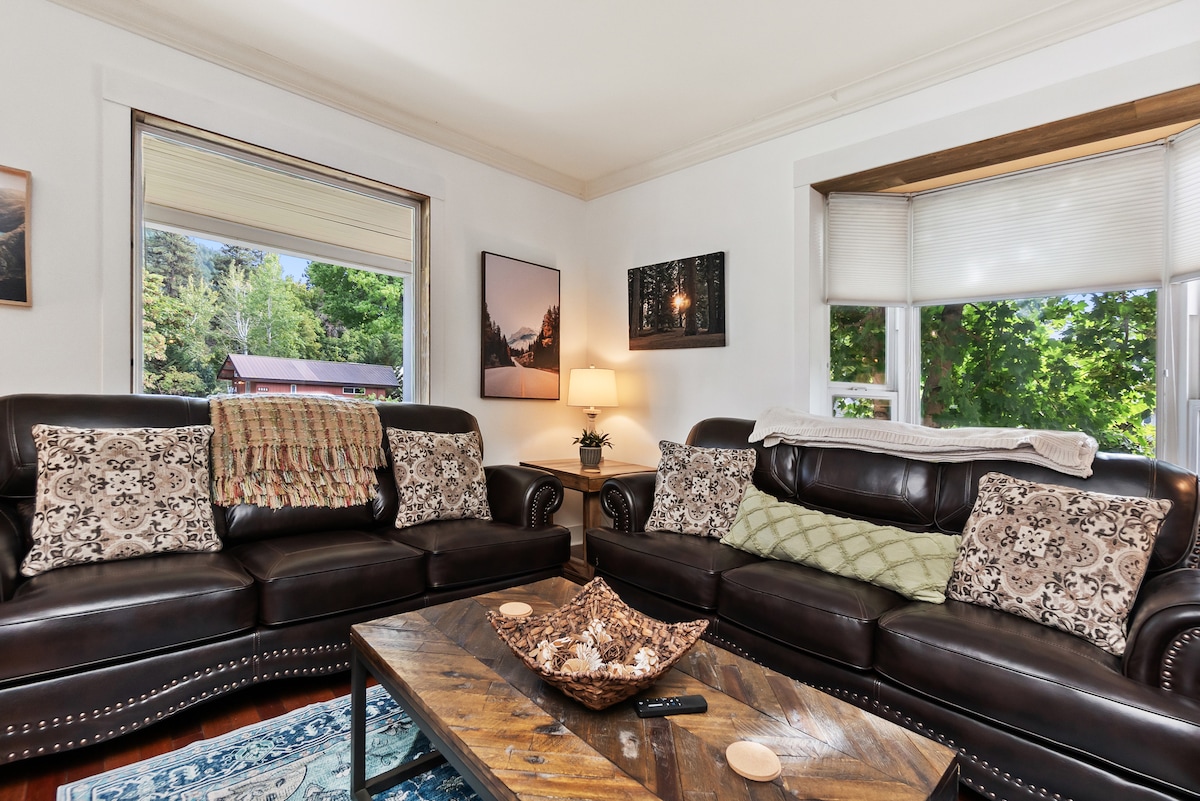 Welcome to Snowcreek House BnB! This charming 3-bedroom retreat offers stunning Enchantments views, a private hot tub, sauna, full kitchen, and cozy living spaces with smart TVs. Each bedroom features plush beds with organic cotton linens. Steps from downtown Leavenworth’s wineries, dining, and river adventures, with free private parking. Perfect for families or groups—your mountain getaway awaits!