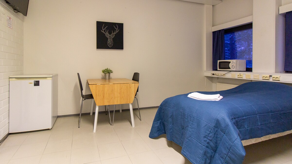 Tämä huone soveltuu yhdelle henkilölle. Huoneessa on yksi vuode sekä vuodetuoli. Hostellin yleisissä tiloissa on jaetut wc ja suihkutilat sekä hyvin varusteltu keittiö ja ruokailutila.
